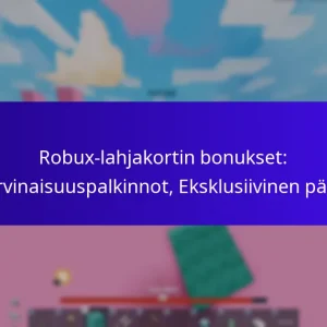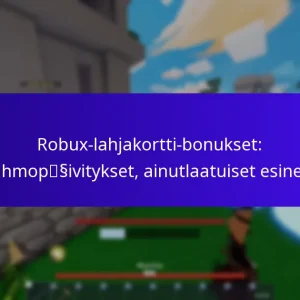 Robux-lahjakorttibonukset tarjoavat pelaajille jännittäviä kampanjapalkintoja, jotka lisäävät Robux-ostosten arvoa. Lunastamalla nämä lahjakortit käyttäjät voivat saada lisä-Robuxeja tai eksklusiivisia pelin sisäisiä esineitä, mikä parantaa heidän kokonaispelikokemustaan. Erilaiset jälleenmyyjät tarjoavat houkuttelevia tarjouksia, joten pelaajat voivat helposti vertailla kampanjoita maksimoidakseen palkintonsa ja nauttiakseen välittömästä pääsystä parannettuun pelattavuuteen.